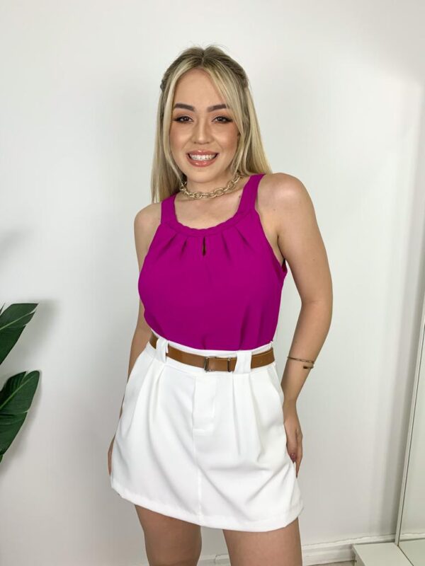 Blusa Bianca é a oportunidade perfeita para quem busca estilo e qualidade. Blusa de alças com detalhe de trançado no decote. Com sua composição em poliéster na cor fúcsia, esse produto é fantástico no corpo.