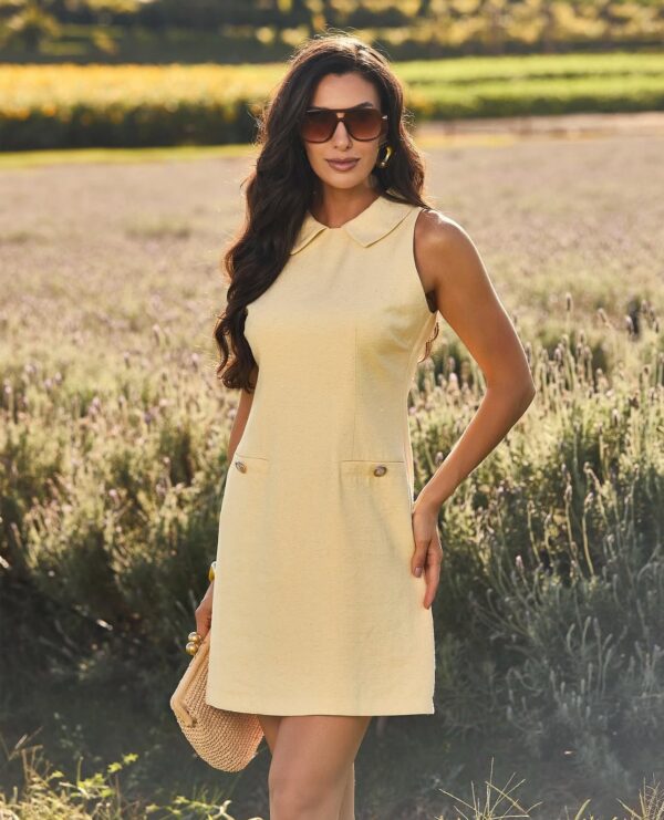 Extremamente sofisticado, e refinado e cavado com gola, dois bolsos fake com botão dourado e ziper atrás , você pode ter certeza de que será incrível. Vestido Marcia Cru Inicial A é a escolha certa!